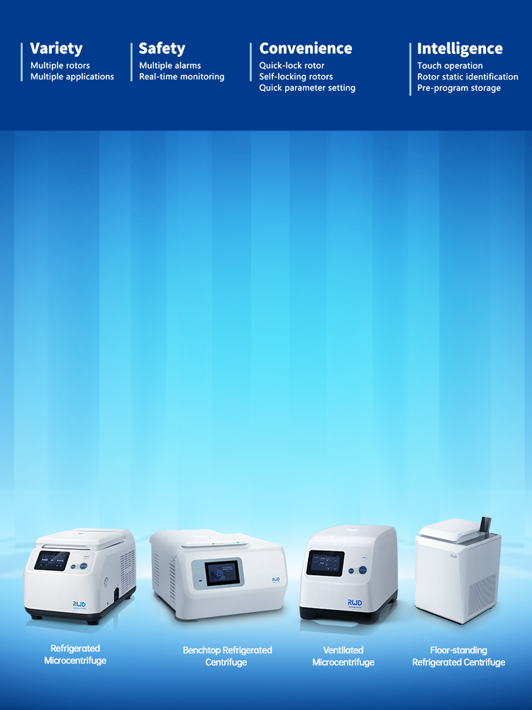 RWD high-speed refrigerated centrifuges are designed to meet a wide range of needs, from research to production, with a powerful centrifugal force of up to 108,000 rpm and a large capacity of 6L