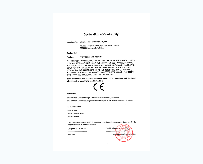 | HYC-461GD | 220~240/50/60 | 461/16.3 | 595*800*1990 | 6/- | CE, DIN13277 (Optional) |